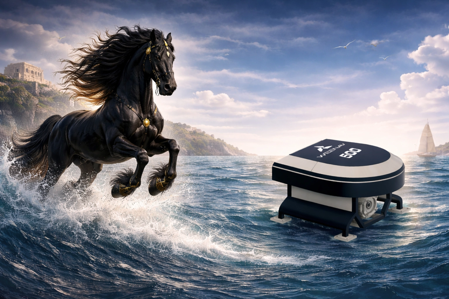 Il y a quelque chose d'étrange à nommer une machine. Une machine ne vieillit pas, ne rêve pas, n'a pas peur de la mer. Et pourtant, les noms que l'on choisit pour ses produits disent beaucoup : ils disent d'où l'on vient, comment on pense, et où l'on veut aller. Chez Weenav, nous avons choisi de chercher nos noms du côté de la Grèce antique — là où la mer était à la fois source de vie, terrain d'aventure et demeure des dieux.